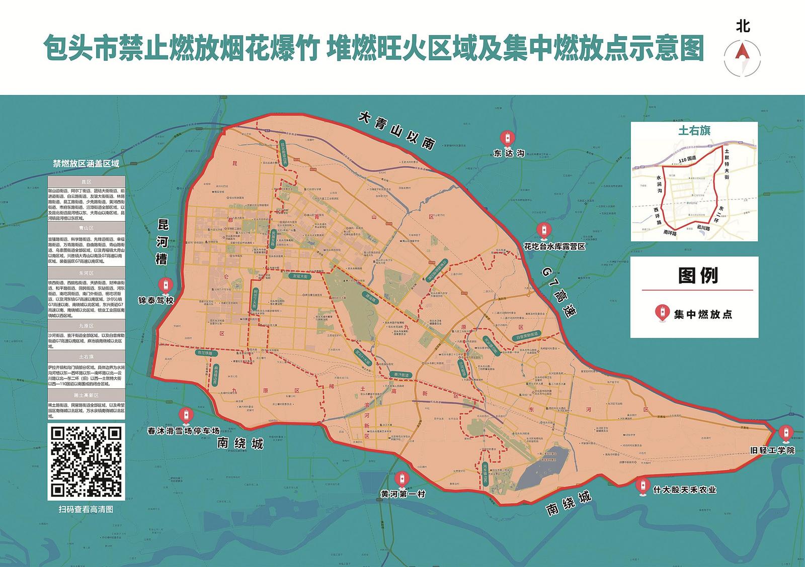 2.土默特右旗:薩拉齊鎮和溝門鎮部分區域。具體邊界為水澗溝河槽以東——西環路以東——南環路以北——云川路以北——東二環(舊)以西——土默特大街以西——110國道以南圍成的閉合區域。