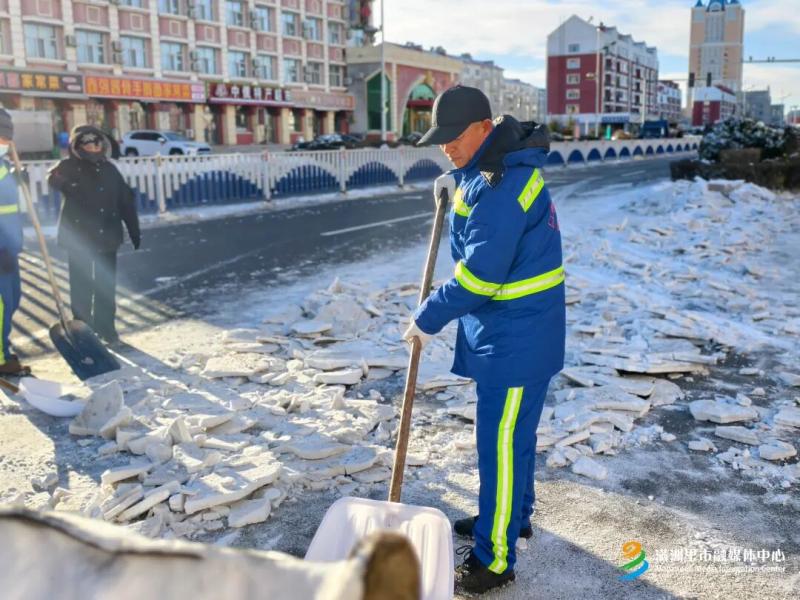 從炎炎夏日到數九寒冬,從披星戴月到朝霞滿天,張金材一年365天從不停歇,始終穿梭在城市街巷。每天清晨,當市民還在夢鄉,他便帶著隊員開啟忙碌的工作。與垃圾為伴、和臟臭“零距離”,一把掃帚、一把鐵鍬、一輛清運車,便是他的工作標配。滿洲里的嚴冬零下三四十攝氏度是常態。大雪過后,道路蓋滿積雪,他也總是最早帶隊抵達現場,推雪板、鐵鍬齊上陣,一鍬一鍬清理積雪。汗水浸透棉衣、在寒風中結成冰霜,他仍連續奮戰十幾個小時,只為打通出行通道。手上的凍瘡反復破潰,他卻從未喊過一句苦,用默默堅守保障著市民出行安全。