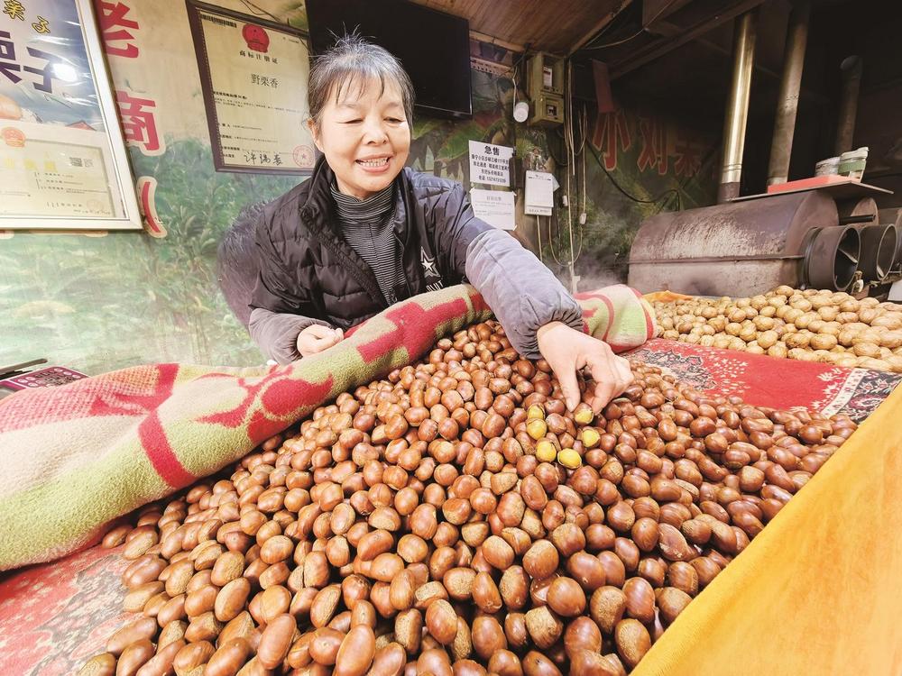 劉玉潔是本地人,她每隔一段時間就會來這里買栗子,因為她和家人不只喜歡直接吃炒栗子,她還喜歡用板栗制作美食。她說,用剛炒出的栗子來做菜,味道最濃郁。“我喜歡用板栗煲湯,尤其是和雞肉搭配,味道很有特色。”半只雞下鍋,放一點枸杞和紅棗熬煮半小時后,放入板栗,小火燜煮十幾分鐘,一道帶著栗子甜香的板栗雞湯就出鍋了,香氣撲鼻、味道醇厚,就像一個貼心的老朋友,暖意下肚,片刻之后便讓人忘了外面的寒冷與積攢了幾日的疲憊。