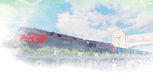 在中俄蒙三國交界的滿洲里口岸,中歐班列駛過國門。