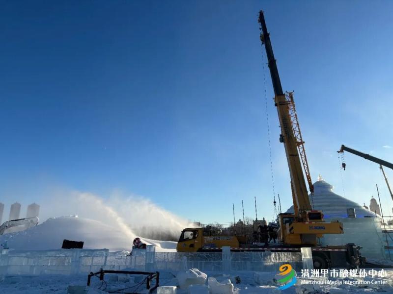 現場施工負責人吳雪峰說:“截至目前,園區施工進度已完成整體工程的15%,正有序推進采冰、冰建砌筑、造雪、雪坯搭建、灌雪、夯雪、雕刻等核心工序。當前累計用冰量約2300立方米,用雪量達25000立方米,各項建設環節穩步落地。作為展現滿洲里冰雪文化特色、豐富冬季文旅業態的重點項目,工程的順利推進將進一步激活滿洲里冰雪經濟活力,為市民和游客打造高品質冬季休閑目的地,助力滿洲里文旅產業高質量發展。”