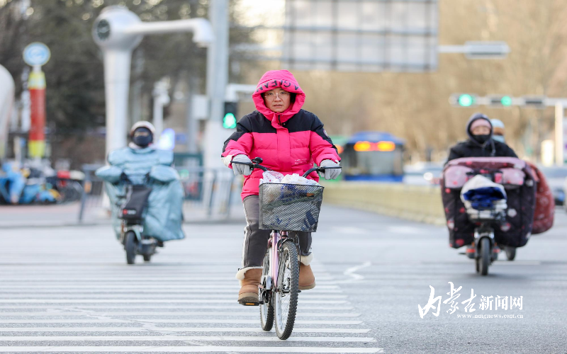 12月1日清晨,呼和浩特市民身著羽絨服出行。據了解,11月30日,呼和浩特市氣象臺發布寒潮藍色預警信號,全市將迎來大幅降溫,最低氣溫出現在12月2日早晨,武川縣降至-24℃左右,其余地區降至-19℃~-16℃,市民出行要及時添衣保暖。攝影/草原云·內蒙古新聞網首席記者 牛天甲